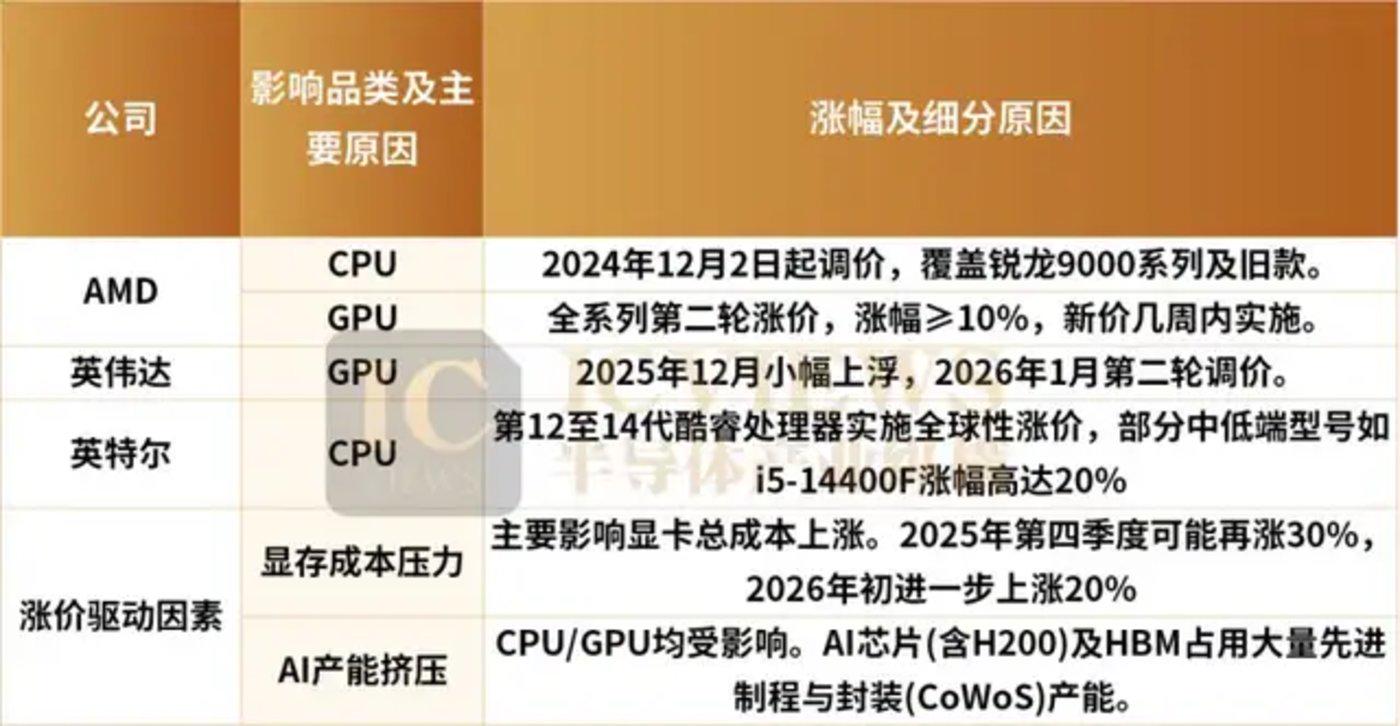 近期半导体市场的涨价信号,已从传闻落地为实际动作,且覆盖了CPU、GPU两大核心硬件。